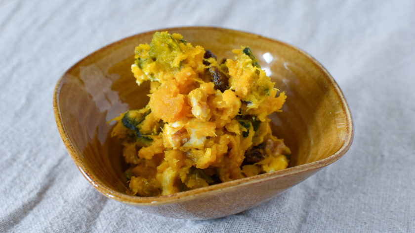 気を補うかぼちゃと、体を潤す乳製品やナッツを合わせたサラダです。